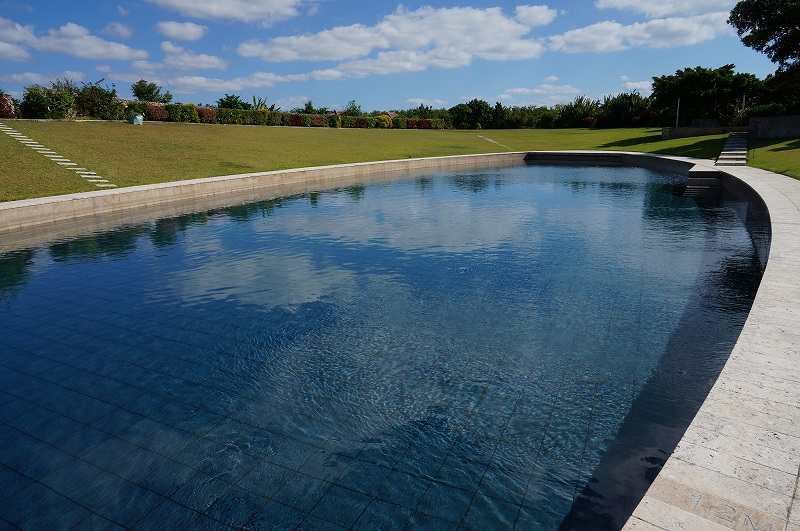 空模様が映り込むこのプールは、見ているだけでも癒されます。