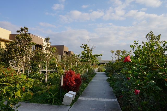 お花も常に咲いています。緑に囲まれて、エリア内でも自然を感じられます。南国ムード満点!