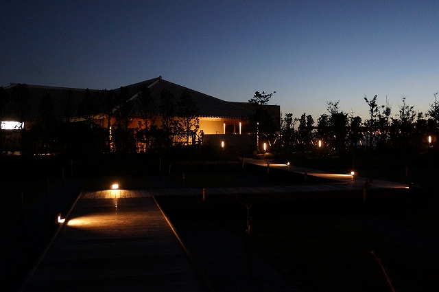 夜の星のや沖縄はライトが灯ってとってもキレイ。